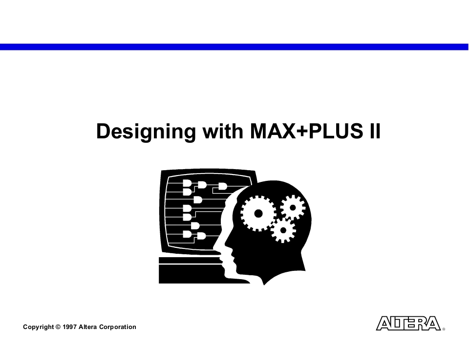Designing with MAX+PLUS IICopyright 1997 Altera CorporationClass AgendaMAX+PLUS II Design EnvironmentMAX+PLUS II Design MethodologyDesign EntryCompilation-SimulationTiming AnalysisDevice Programming■Review and SupportCopyright 1997 Altera CorporationMAX+PLUS IIDesign EnvironmentCopyright 1997 Altera Corporation