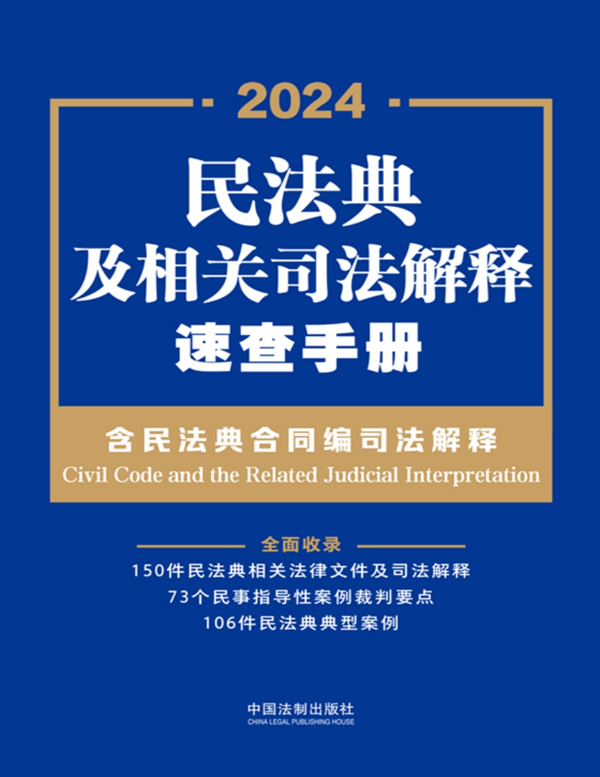 2024民法典及相关法解释速查手册含民法典合同编司法解释Civil Code and the Related Judicial Interpretation全面收录150件民法典相关法律文件及司法解释73个民事指导性案例裁判要点106件民法典典型案例中国法制出版社版权信息COPYRIGHT书名:民法典及相关司法解释速查手册(含民法典合同编司法解释)(2024年版)作者:中国法制出版社出版社:中国法制出版社出版时间:2023年12月1SBN:9787521633306字数:920千字编辑说明2021年1月1日,新中国成立以来的第一部以法典命名、具有里程碑意义的法律一《中华人民共和国民法典》开始施行。为确保正确适用民法典,统一民事法律适用标准,最高人民法院对标民法典立法精神和法律规定,对新中国成立以来现行的591件司法解释及相关规范性文件进行了全面的清理,并修改制定了第一批与民法典配套的司法解释和规范性文件。民法典公布后至今,最高人民法院陆续发布了第25批至第38批指导性案例,并发布了一系列与民法典相关的民事领域的司法解释。为了方便读者全面学习了解新公布或修订的这些司法解释和案例,更为快捷地查找使用相关文件,我们编辑出版了这本《民法典及相关司法解释速查手册》,并及时根据立法动态修订再版。本书收录的法律文件范围包括:1带有条文主旨的民法典标准文本,并将民法典配套司法解释的条文对照民法典的主条文做了关联脚注加工,便于参阅使用。2.全文收录新制定的民法典配套司法解释和清理修改的司法解释及司法文件。条文的改动之处均在正文中以黑体字标示,突出显示修改变化。3.补充收录其他相关司法解释,如修改后的《民事案件案由规定》《九民纪要》《全国法院贯彻实施民法典工作会议纪要》和最高人民法院、最高人民检察院关于废止部分司法解释文件的决定等,涵盖所有废止文件目录。4.分类汇编可供司法实践中参照适用的最高人民法院民事指导性案例裁判要点,收录第一批、第二批最高人民法院发布的人民法院贯彻实施民法典典型案例,第一批、第二批、第三批人民法院大力弘扬社会